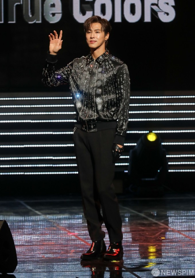 韩国男团东方神起成员郑允浩(瑜卤允浩)个人专辑《True Colors》Showcase12日在首尔举行,他在舞台上帅气演唱主打歌曲《Follow》,并接受记者媒体提问,讲述专辑的制作过程。
