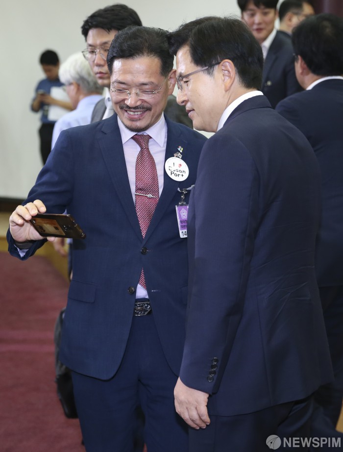 [서울=뉴스핌] 이형석 기자 = 황교안 자유한국당 대표가 18일 오전 서울 여의도 국회 의원회관에서 열린 2020 경제대전환위원회 제1차 전체 토론회에서 기념촬영을 하고 있다. 2019.06.18 leehs@newspim.com