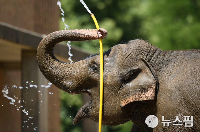 | [베를린 로이터=뉴스핌] 황숙혜 기자 = 더위를 식히기 위해 코로 호스를 잡고 샤워하는 베를린 동물원의 코끼리. 2019. 06. 25. |