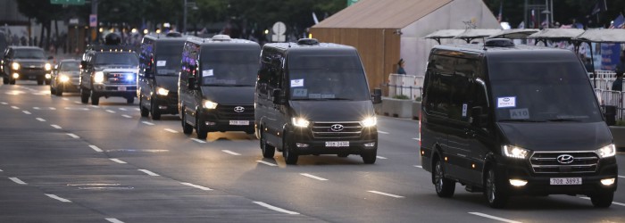 [서울=뉴스핌] 이한결 기자 = 도널드 트럼프 미국대통령을 경호하는 차량들이 29일 오후 서울 종로구 광화문광장을 지나고 있다. 2019.06.29 alwaysame@newspim.com