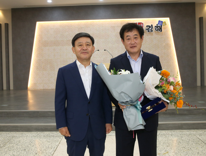 [창원=뉴스핌] 남경문 기자 = 경남 김해시는 7월 정례조회에서 부국정공㈜ 박상진(59) 대표에게 ‘자랑스러운 CEO’상을 수여했다고 1일 밝혔다.