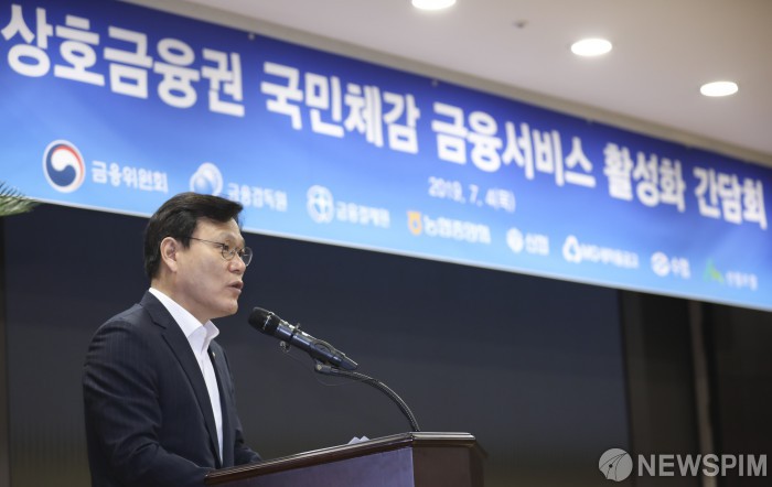 [서울=뉴스핌] 이한결 기자 = 최종구 금융위원회 위원장이 4일 오전 서울 중구 농협중앙회 중앙본부에서 열린 ‘상호금융권 국민체감 금융서비스 활성화 간담회’에 참석해 모두발언을 하고 있다. 2019.07.04 alwaysame@newspim.com