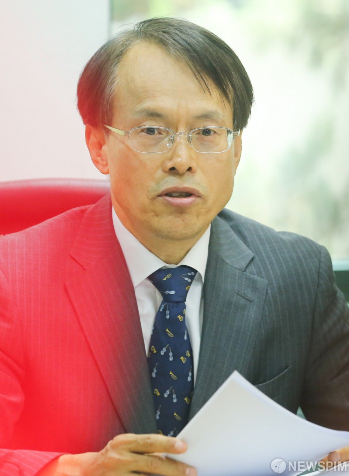 [서울=뉴스핌] 윤창빈 기자 = 4억원대 사기 혐의로 인해 피소당한 박상민 측 법률대리인인 유병옥 변호사가 4일 오후 서울 서초구 변호사회관에서 긴급 기자회견을 하고 있다. 2019.07.04 pangbin@newspim.com