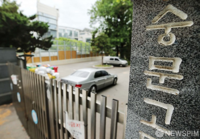 [서울=뉴스핌] 윤창빈 기자 = 서울시교육청은 9일 오전 서울 종로구 서울시교육청에서 경희고‧배재고‧세화고‧숭문고‧신일고‧이대부고‧중앙고‧한대부고 등 관내 8개 자율형 사립 고등학교(자사고)를 전격 지정 취소했다. 사진은 이 날 자사고 지정이 취소된 서울 마포구 숭문고등학교. 2019.07.09 pangbin@newspim.com