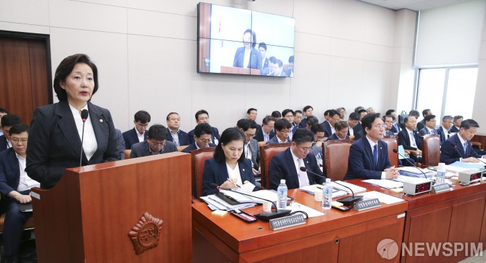 [서울=뉴스핌] 이형석 기자 = 박영선 중소벤처기업부 장관이 10일 오전 서울 여의도 국회에서 열린 산업통상자원중소벤처기업위원회 전체회의에서 업무보고를 하고 있다. 2019.07.10 leehs@newspim.com