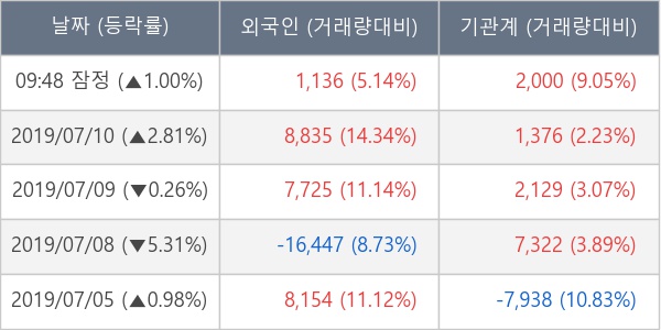 [표] 외국인ㆍ기관 순매매량 (단위 주)