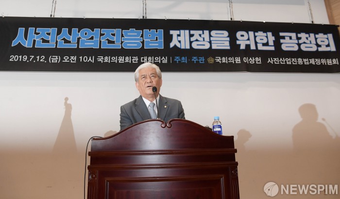 [서울=뉴스핌] 사진공동취재단 = 12일 서울 국회 의원회관 대회의실에서 열린 '사진산업진흥법 제정을 위한 공청회'에서 더불어민주당 이상헌 의원이 축사하고 있다. 이 의원은 축사에서 "사진 산업 진흥을 위한 제도적 장치를 마련해 국민의 문화적 삶의 질을 높이고 사진 관련 일자리 창출을 기대한다"고 밝혔다. 2019.07.12 photo@newspim.com