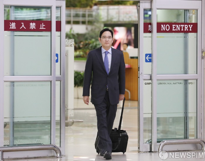 [김포공항=뉴스핌] 백인혁 기자 = 이재용 삼성전자 부회장이 일본 출장을 마치고 12일 오후 서울 강서구 김포공항을 통해 귀국하고 있다. 2019.07.12 dlsgur9757@newspim.com