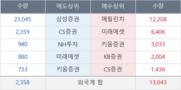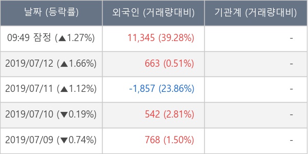 [표] 외국인ㆍ기관 순매매량 (단위 주)