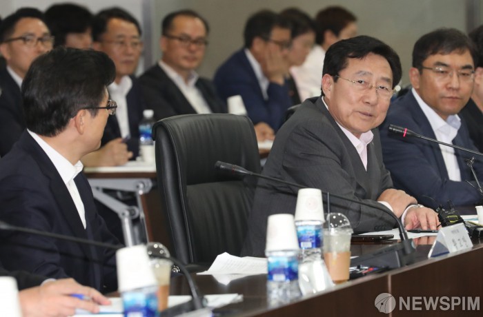 [서울=뉴스핌] 백인혁 기자 = 김기문 중소기업중앙회장이 15일 오후 서울 영등포구 중소기업중앙회에서 열린 자유한국당 중소기업인 간담회에서 인사말을 하고 있다. 2019.7.15 dlsgur9757@newspim.com