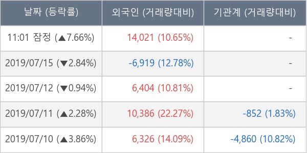 [표] 외국인ㆍ기관 순매매량 (단위 주)