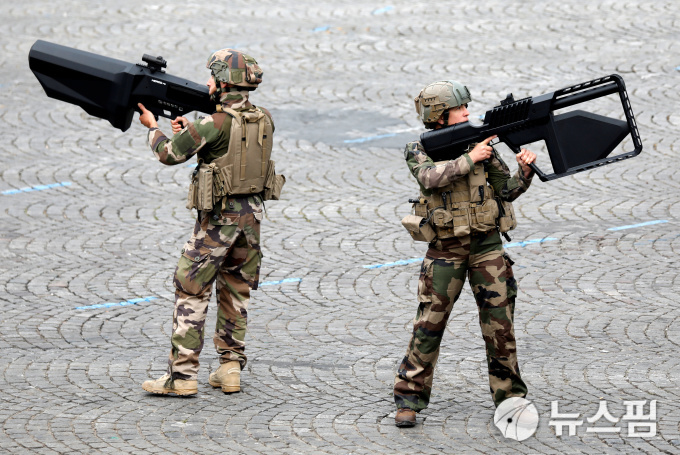 | [파리 로이터=뉴스핌] 박우진 기자 = 14일(현지시간) 프랑스 파리 샹젤리제 거리에서 열린 프랑스 혁명 기념일 행사에서 안티 드론 건으로 무장한 프랑스 군인들이 경계 근무를 서고 있다. 2019.07.14 |
