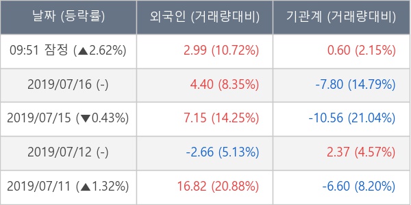 [표] 외국인ㆍ기관 순매매량 (단위 만주)