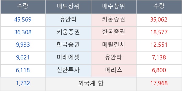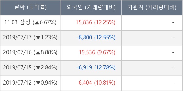 [표] 외국인ㆍ기관 순매매량 (단위 주)