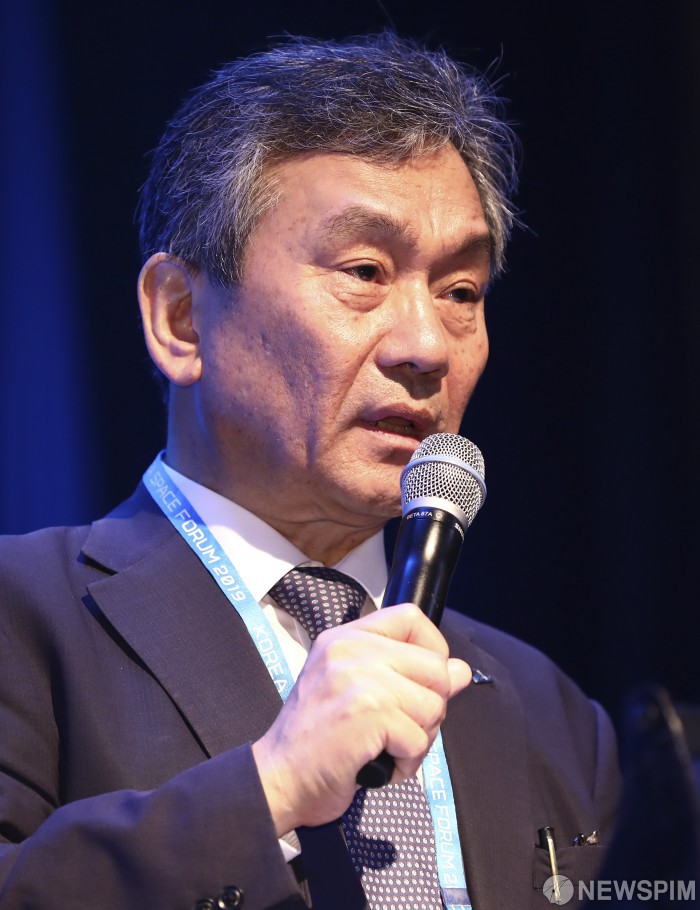 [서울=뉴스핌] 이한결 기자 = 임철호 한국항공우주연구원 원장이 19일 오전 서울 여의도 콘래드 호텔에서 열린 ‘코리아 스페이스 포럼 2019, 항공우주 학술 심포지엄 개회식’에서 환영사를 하고 있다. 2019.07.19 alwaysame@newspim.com