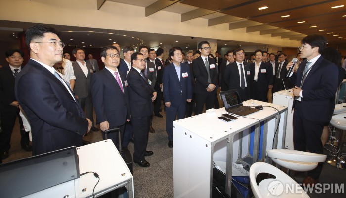 [서울=뉴스핌] 이한결 기자 = 유영민 과학기술정보통신부 장관, 문용식 한국정보화진흥원(NIA) 원장, 노웅래 과학기술정보방송통신위원회 위원장(더불어민주당) 및 관계자들이 22일 오후 서울 중구 대한상공회의소(대한상의)에서 열린 ‘빅데이터 플랫폼 및 센터 출범식’에서 부스를 둘러보고 있다. 2019.07.22 alwaysame@newspim.com