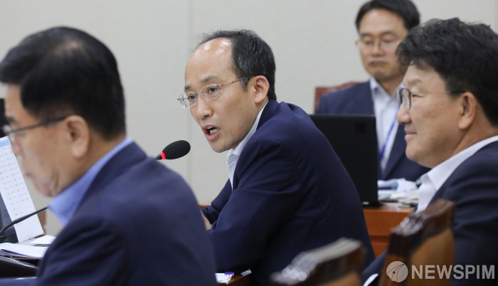 [서울=뉴스핌] 최상수 기자 = 23일 오후 서울 여의도 국회에서 열린 기획재정위원회 전체회의에서 추경호 자유한국당 간사가 발언하고 있다. 2019.07.23 kilroy023@newspim.com