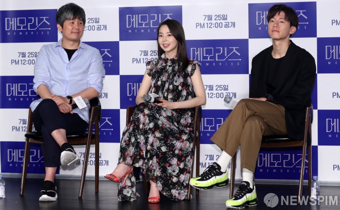 [서울=뉴스핌] 정일구 기자 = 김종관 감독(왼쪽부터), 배우 안소희, 김무열이 25일 오후 서울 광진구 롯데시네마 건대입구에서 열린 영화 '메모리즈' 언론시사회에 참석하고 있다. 영화 '메모리즈'는 꿈을 기억하는 특별한 능력을 가진 일러스트레이터 현오(김무열)가 꿈을 담은 메모리칩을 통해 잊혀지지 않는 꿈의 여행을 떠나는 이야기를 그린 판타지 드라마다. 2019.07.25 mironj19@newspim.com