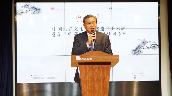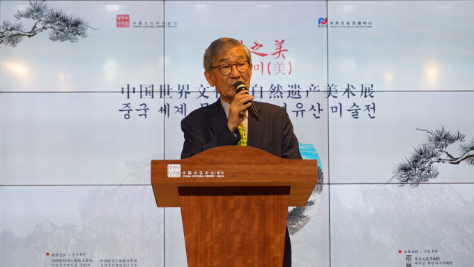 金宗圭理事长随后致辞。他表示,此次展览的举办正值不久前韩国书院与中国良渚古城等同时入选世界文化遗产名录之际,意义重大。中韩两国传统文化价值观传承千年绵延不断,加深了两国的友好交往与深厚情谊。此次展览通过美术作品让韩国民众进一步了解中国壮美的世界文化与自然双重遗产,令人十分感动。希望今后开展更多文化交流活动,进一步促进两国友好往来,推动中韩关系不断向前发展。