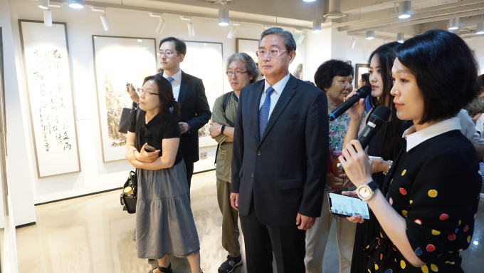 中国驻韩国使馆公使衔参赞王鲁新、首尔中国文化中心副主任云峰、副主任李少鹏、韩国文化遗产国民信托理事长金宗圭(김종규)、韩国文化体育观光部新闻发言人金辰坤、首尔市观光协会常勤副会长朴正禄、前国民日报会长金荣一、国立中央博物馆亚洲部学艺研究官李姃恩、前韩国美术协会文人画分科委员长金永三、文字21社长石泰珍以及韩国文化艺术机构代表、书画爱好者等出席活动。