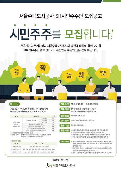 [서울=뉴스핌] 이동훈 기자 =서울주택도시공사가 시민 주주기업으로 거듭나기 위해 서울시민을 대표하는 'SH 시민 주주단'을 모집한다.