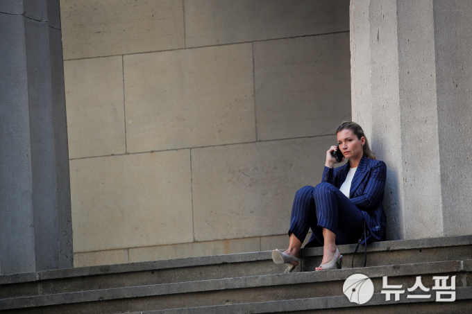 | [뉴욕 로이터=뉴스핌] 전솔희 인턴기자 = 한 여성이 미국 뉴욕시 월스트리트 가에 위치한 페더럴 홀 계단에 앉아 전화 통화를 하고 있다. 2019.07.19. |