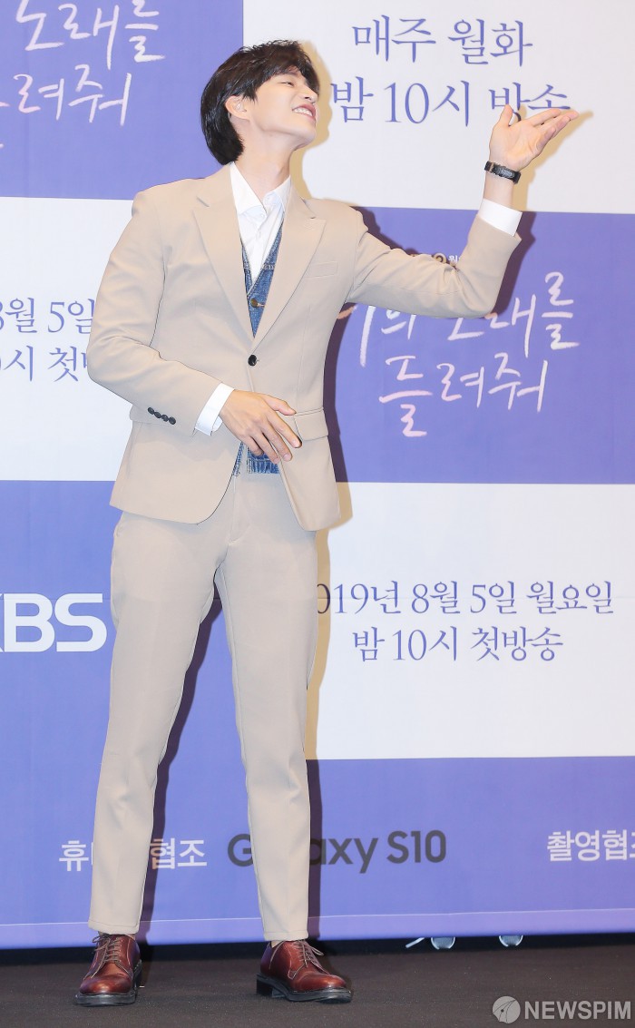 [서울=뉴스핌] 윤창빈 기자 = 배우 송재림이 1일 오후 서울 구로구 라마다 서울신도림호텔에서 열린 KBS 2TV 월화드라마 ‘너의 노래를 들려줘’ 제작발표회에서 포토타임을 가지고 있다. KBS 2TV 새 월화드라마 ‘너의 노래를 들려줘’는 살인사건이 있었던 ‘그날’의 기억을 전부 잃은 팀파니스트가 수상한 음치남을 만나 잃어버린 진실을 찾아가는 미스터리 로코 드라마다. 5일(월) 밤 10시에 첫 방송 된다. 2019.08.01 pangbin@newspim.com