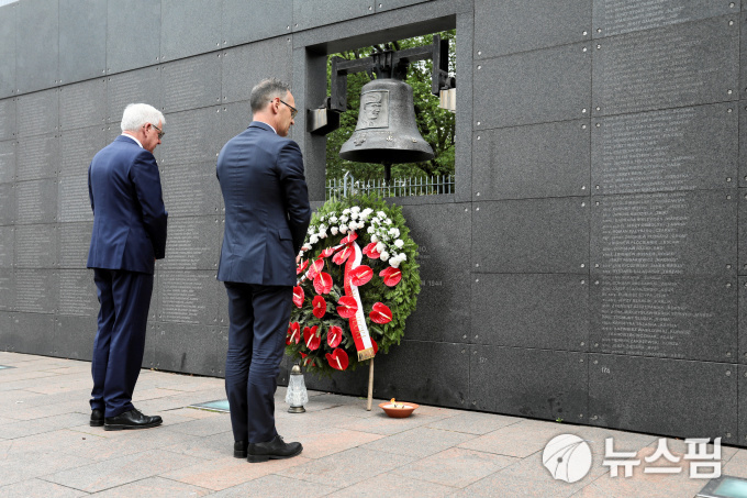 | [바르샤바 로이터=뉴스핌] 김근철 기자=독일의 하이코 마스 외무장관(오른쪽)이 1일(현지시간) 폴란드 수도 바르샤바에 열린 '바르샤바 봉기' 75주년 기념식에 참석, 야첵 차푸토비치 폴란드 외무장관과 함께 헌화하고 있다. 마스 장관은 이날 “ 희생자를 기리고 폴란드 국민에 용서를 구하기 위해 왔다”고 말했다.2019.08.01. |