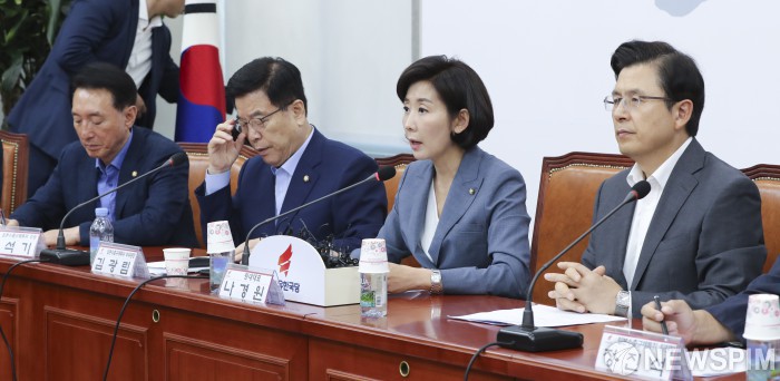 [서울=뉴스핌] 이형석 기자 = 나경원 자유한국당 원내대표가 2일 오전 서울 여의도 국회에서 열린 일본수출규제대책특위 긴급회의에서 모두발언을 하고 있다. 2019.08.02 leehs@newspim.com