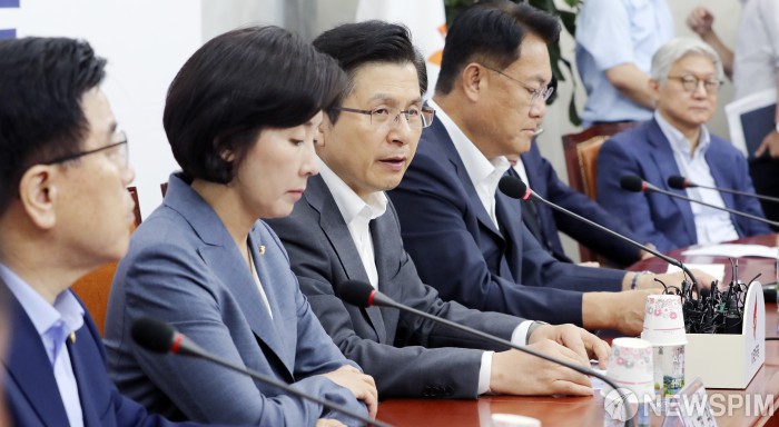 [서울=뉴스핌] 이형석 기자 = 황교안 자유한국당 대표가 2일 오전 서울 여의도 국회에서 열린 일본수출규제대책특위 긴급회의에서 모두발언을 하고 있다. 2019.08.02 leehs@newspim.com