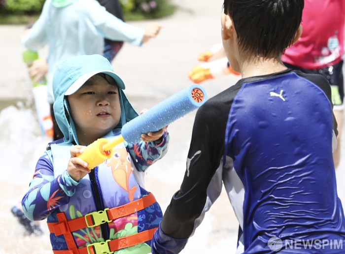 [서울=뉴스핌] 이한결 기자 = 서울·경기·강원·충북·충남·전남 지역에 폭염경보가 내려진 2일 오후 서울 중구 서울광장 분수대에서 어린이들이 무더위를 피해 물놀이를 즐기고 있다. 2019.08.02 alwaysame@newspim.com