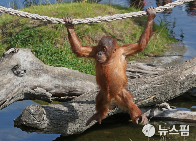 | [브후질레트 로이터=뉴스핌] 황숙혜 기자 = 벨기에 한 동물원의 세 살 난 원숭이가 줄에 매달려 즐거운 한 때를 보내고 있다. 2019. 08. 02. |