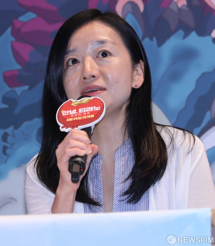 [서울=뉴스핌] 백인혁 기자 = 강민하 프로듀서가 5일 오후 서울 광진구 롯데시네마 건대입구점에서 열린 영화 '안녕,티라노' 언론시사회 및 기획 발표회에서 인사말을 하고 있다. 2019.08.05 dlsgur9757@newspim.com