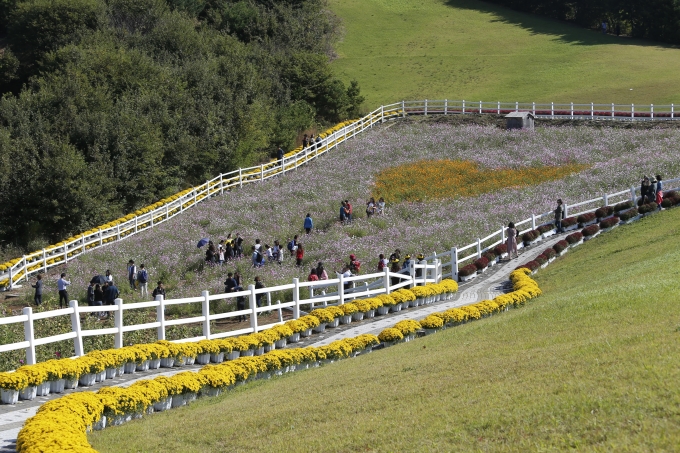 축제 기간인 10월 상순부터 노란색과 주황색 등 형형색색의 만개된 코스모스 꽃을 볼 수 있을 것으로 전망된다.