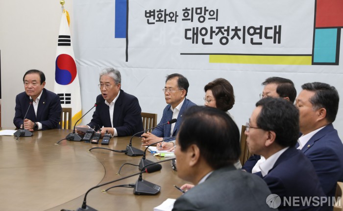 [서울=뉴스핌] 최상수 기자 = 13일 오전 서울 여의도 국회에서 열린 '변화와 희망의 대안정치연대' 회의에서 대표격인 유성엽 의원이 발언하고 있다. 2019.08.13 kilroy023@newspim.com