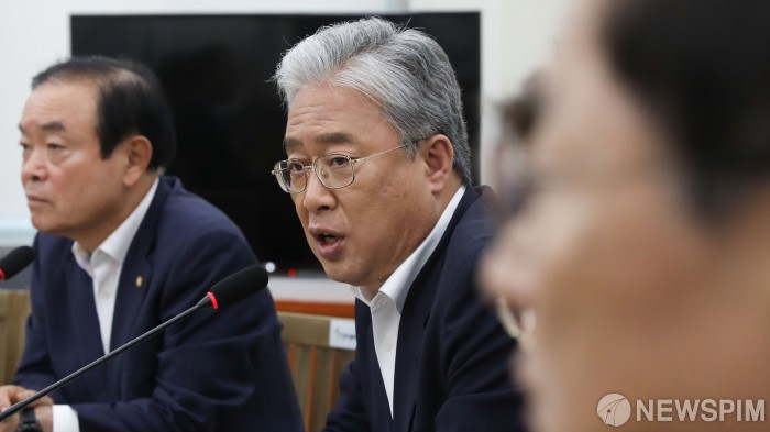 [서울=뉴스핌] 최상수 기자 = 13일 오전 서울 여의도 국회에서 열린 '변화와 희망의 대안정치연대' 회의에서 대표격인 유성엽 의원이 발언하고 있다. 2019.08.13 kilroy023@newspim.com