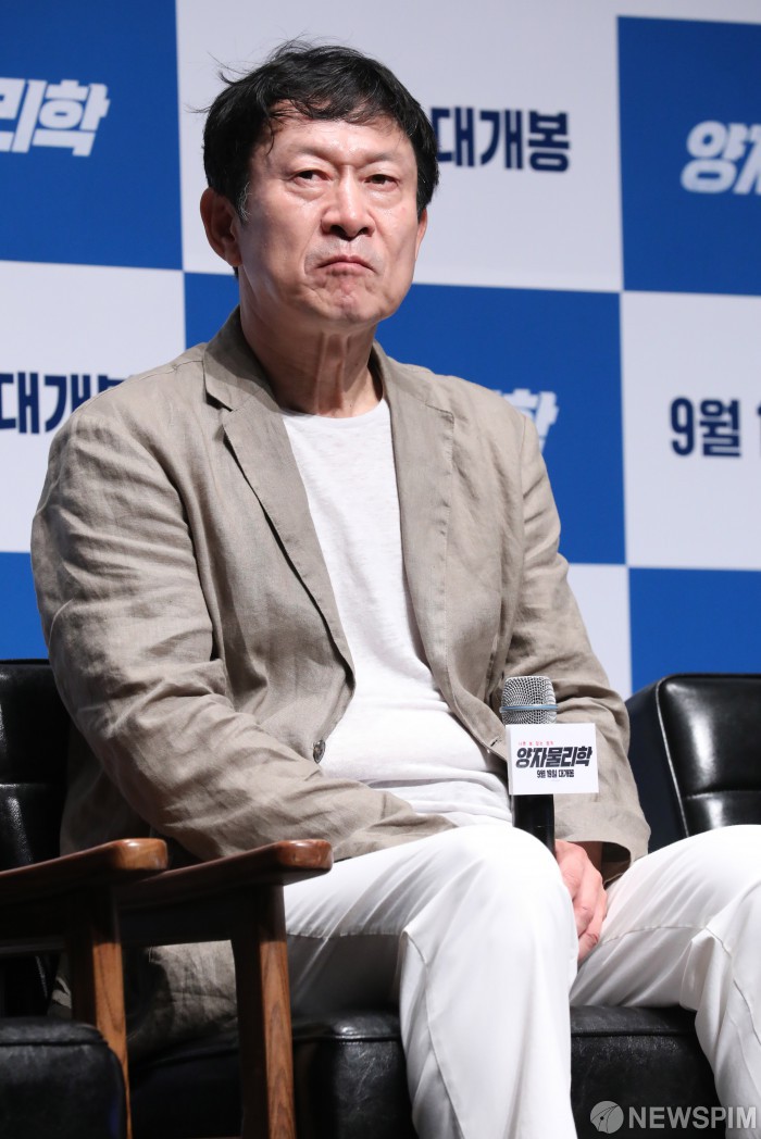 [서울=뉴스핌] 백인혁 기자 = 배우 김응수가 13일 오전 서울 강남구 압구정CGV에서 열린 영화 '양자물리학' 제작보고회에 참석해 있다. 2019.08.13 dlsgur9757@newspim.com
