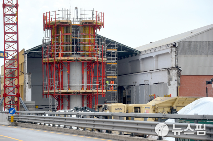 | [제노바 로이터=뉴스핌] 전솔희 인턴기자 = 지난해 8월 14일 이탈리아 제노바에서 붕괴돼 43명의 생명을 앗아간 모란디 교를 대체할 새로운 다리가 지어지고 있다. 2019.08.13. |