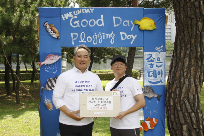[창원=뉴스핌] 남경문 기자 = 무학그룹 좋은데이나눔재단은 16일 부산시 해운대구APEC 나루공원에서 대학생으로 구성된 좋은데이청년봉사단, 정신재활시설 송국클럽하우스와 함께 환경정화활동 ‘딱 좋은데이와 함께하는 플로깅’참여형 사회공헌 활동을 진행했다.