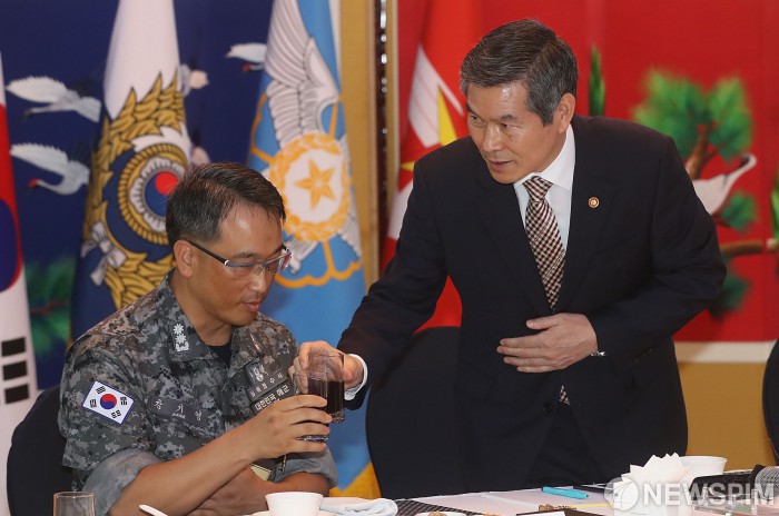 [서울=뉴스핌] 정일구 기자 = 정경두 국방부 장관이 19일 오후 서울 용산구 육군회관에서 열린 '임무수행 유공장병 가족초청 행사'에서 건배 제의를 하고 있다. 2019.08.19 mironj19@newspim.com