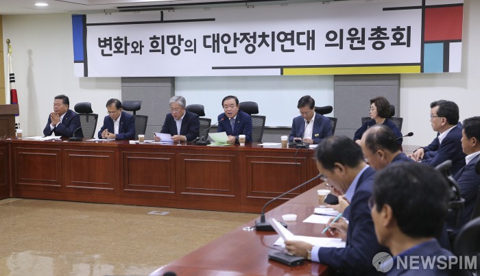 [서울=뉴스핌] 이형석 기자 = 장병완 대안정치연대 의원이 20일 오전 서울 여의도 국회 의원회관에서 열린 의원총회에서 모두발언을 하고 있다. 2019.08.20 leehs@newspim.com