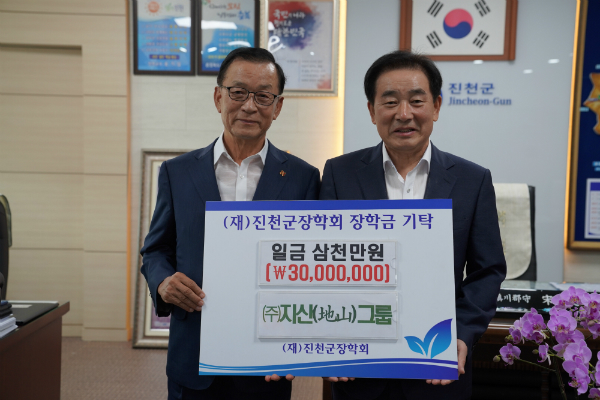 [진천=뉴스핌] 박상연 기자 = 지산그룹(회장 한주식)은 21일 충북 진천군청을 방문, 장학금 3000만원을 재단법인 진천군 장학회(이사장 송기섭)에 전달했다.
