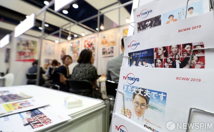 [서울=뉴스핌] 정일구 기자 = 21일 오전 서울 강남구 코엑스에서 열린 '국제방송영상마켓(BCWW) 2019'에서 방송관계자들이 일본 방송·제작사 부스에서 상담을 하고 있다. 2019.08.21 mironj19@newspim.com