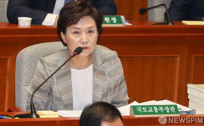 [서울=뉴스핌] 최상수 기자 = 김현미 국토교통부 장관이 2일 오전 서울 여의도 국회에서 열린 예산결산특별위원회 전체회의에서 의원들의 질의에 답변하고 있다. 2019.09.02 kilroy023@newspim.com