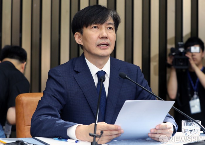 [서울=뉴스핌] 최상수 기자 = 조국 법무부 장관 후보자가 2일 오후 서울 여의도 국회에서 열린 기자간담회에 참석해 취재진과 질의응답을 하고 있다. 2019.09.02 kilroy023@newspim.com