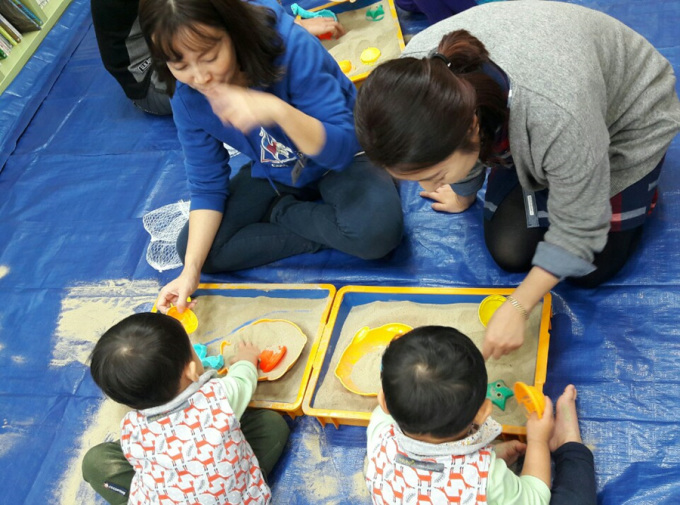 | 유아 스마트폰 과의존 예방 프로그램에 참여한 아이들이 장난감을 가지고 놀고 있다. [사진=충남도청] |
