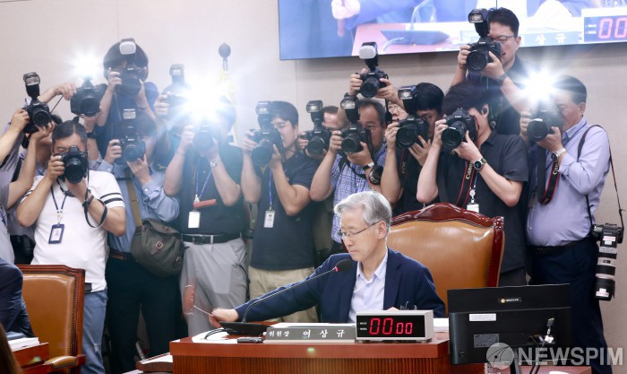 [서울=뉴스핌] 이형석 기자 = 여상규 위원장이 5일 오후 서울 여의도 국회에서 열린 법제사법위원회 전체회의에서 의사봉을 두드리고 있다. 2019.09.05 leehs@newspim.com