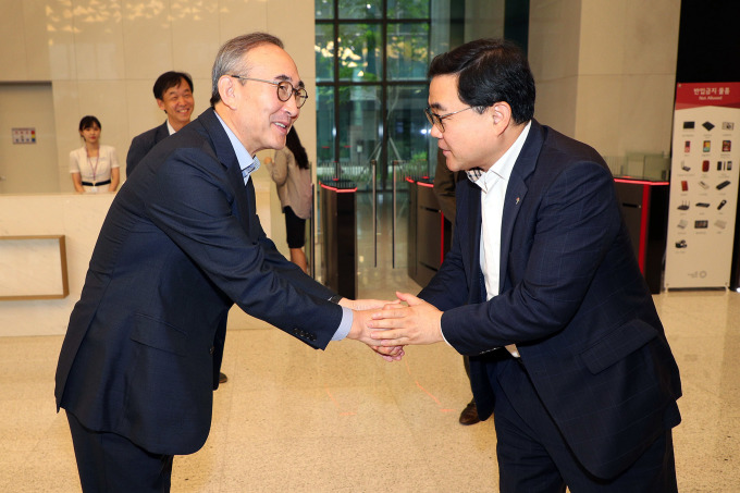 | 허성무 창원시장(오른쪽)이 5일 서울시 강서구 마곡동 LG사이언스파크를 방문해 김영섭 LG CNS대표이사를 만나 반갑게 악수하고 있다.[사진=창원시청] 2019.9.5. |
