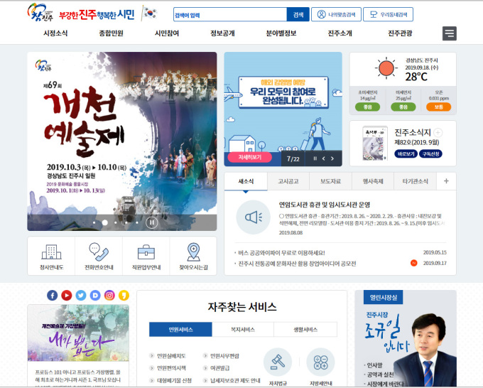 | '굿 콘텐츠 서비스' 인증을 획득한 진주시 대표 홈페이지[사진=진주시청]2019.9.18 |