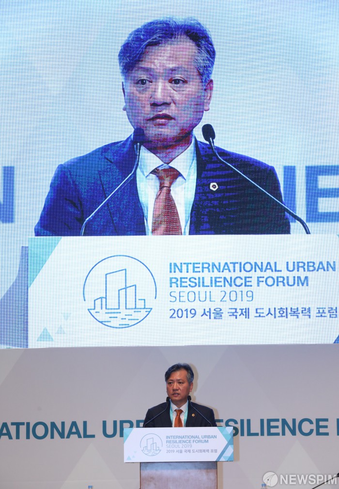 [서울=뉴스핌] 백인혁 기자 = 신원철 서울시의회 의장이 23일 오전 서울 중구 롯데호텔에서 열린 서울국제도시회복력 포럼에서 축사를 하고 있다. 2019.09.23 dlsgur9757@newspim.com